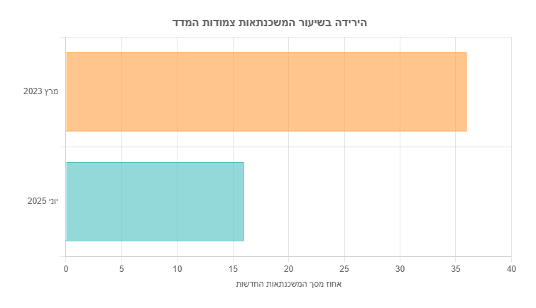 הבריחה של הציבור ממסלולים צמודי מדד היא אחת המגמות הבולטות ביותר בשוק. נתונים מראים כי שיעור האשראי הצמוד למדד במשכנתאות חדשות צנח מ-36% במרץ 2023 ל-16% בלבד ביוני 2025. זוהי הוכחה ניצחת לכך שהציבור מבין את הסכנה הגלומה בהצמדה בתקופה אינפלציונית.