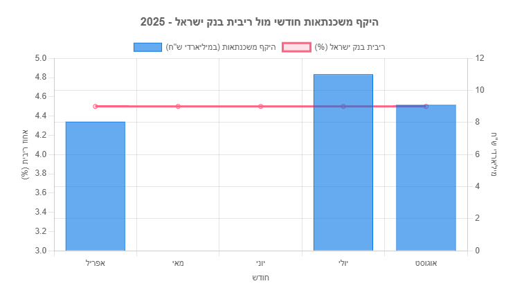 - פרדוקס שוק הדיור: על פניו, שוק המשכנתאות נראה שוקק חיים. במחצית הראשונה של 2025 ניטלו משכנתאות בהיקף של כ-50 מיליארד ש"ח, וחודשים כמו יולי ואוגוסט הציגו נתונים גבוהים של 11 ו-9.1 מיליארד ש"ח בהתאמה. אולם, ניתוח מעמיק מגלה כי נתונים אלו מטעים. הם אינם משקפים פעילות חדשה ערה, אלא בעיקר את סיומו של גל עסקאות ישנות שהבשילו כעת, לצד גל מיחזורים. בפועל, שוק הדירות החדשות נמצא בהאטה, עם ירידות חדות במכירות.